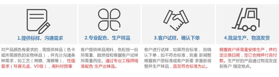 主營產(chǎn)品有:色母粒、功能母粒、抗老化抗紫外線、抗靜電母粒、阻燃母粒公司以磷系阻燃母粒、氮系阻燃母粒、溴系阻燃母粒、阻燃改性塑料為主,PP環(huán)保阻燃母粒、PE阻燃母粒、PC透明無鹵阻燃母粒、PET透明無鹵阻燃母粒、PA無鹵阻燃母粒、廣泛應用于:......